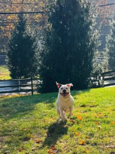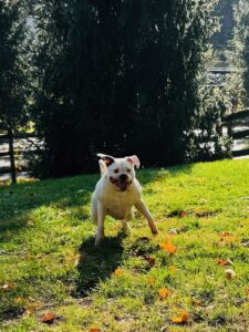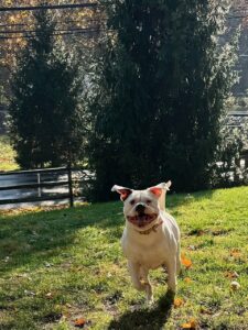 Claudia’s favorite things: playing 🙂 spending time with people and dogs, any chew toys. benebones, marrow bones and all toys, car rides, walks, loving her people.